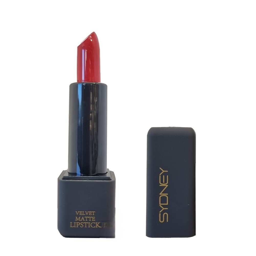 رژ لب جامد سیدنی مدل Velvet Matte جلوه کاملا مات، مخملی و ماندگاری 24 ساعته روی لب دارد. این محصول بدون ایجاد خشکی و ترک، رنگ یکدست و بسیار زیبایی به لبها میدهد که به علت مات بودن، بسیار شیک و جذاب است و به سادگی در اثر خوردن و آشامیدن پاک نمیشود.