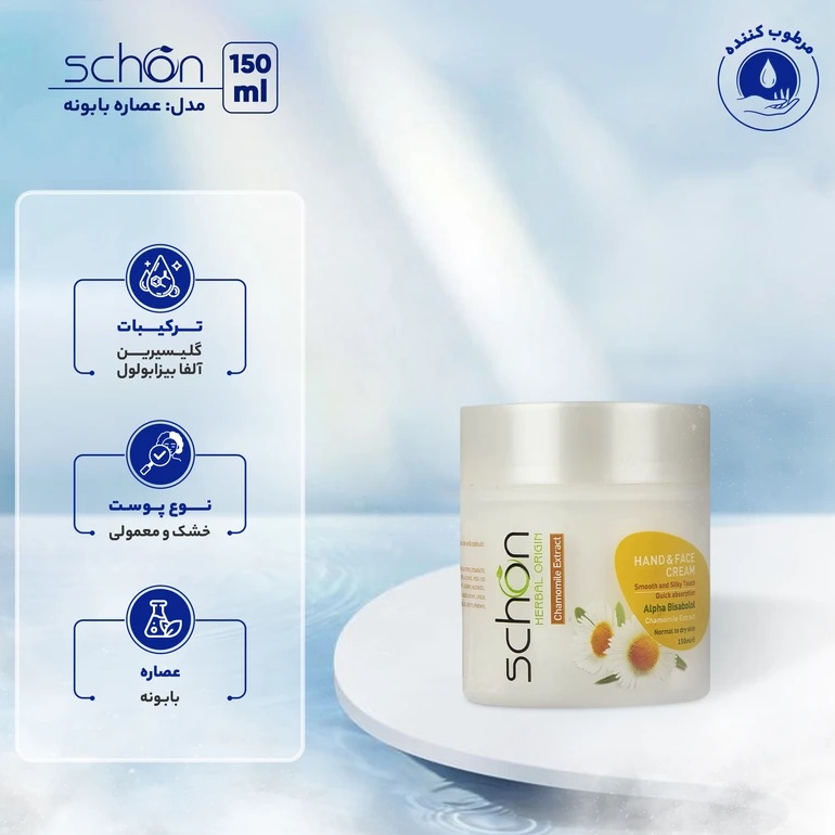 کرم مرطوبکننده دست و صورت شون مدل عصاره بابونه حجم 150 میلیلیتر